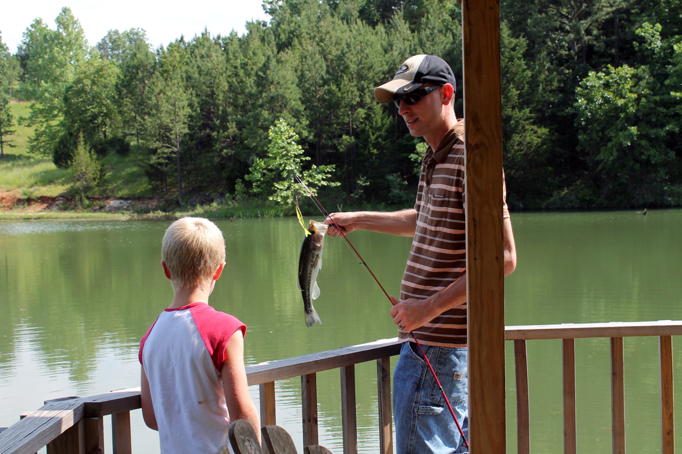 We have catch and release fishing on the lake, available to all guests at no extra charge. No fishing license is required but you will need to provide your own pole & tackle. For children and non-swimmers we require that you use the life jackets available by the boats, and no swimming is allowed, please.