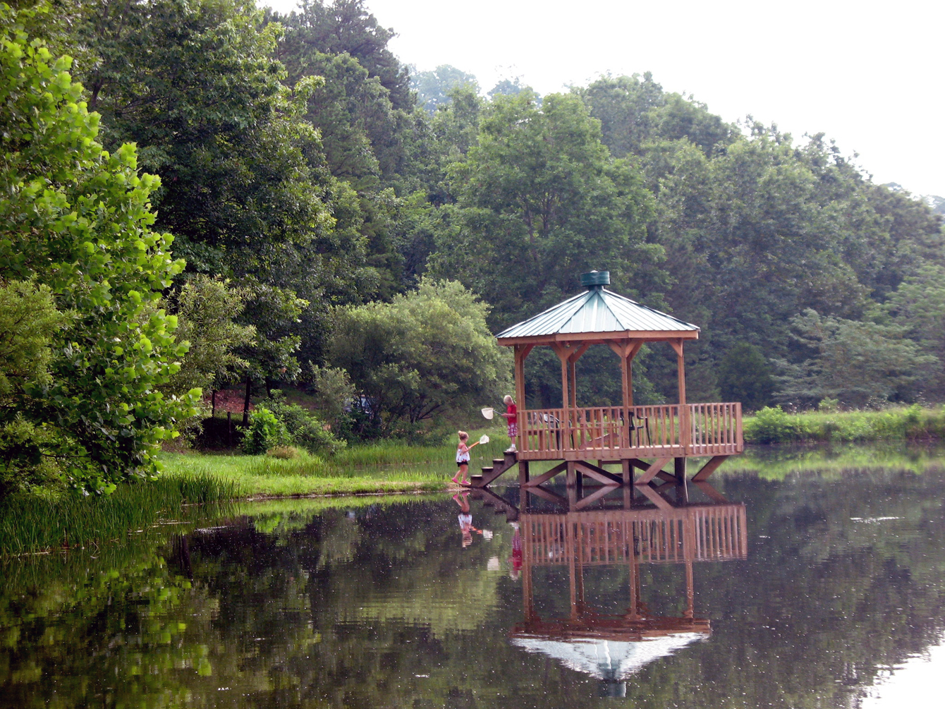 You may use our paddleboat, or one of our canoes to explore the shoreline, or float lazily around the lake. Or pull up a chair in the shade of the Gazebo built out on the water and read a good book, visit with friends or family, or take a nap/rest break.